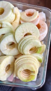 *Note: I’ve decided that owning an apple peeler/slicer, while not necessary, might just be the biggest game-changer for apple recipe baking/making with kids. Hours of entertainment and bonding thanks to a fun crank that makes for safer slicing and plenty of novelty (holding attention for lots longer).